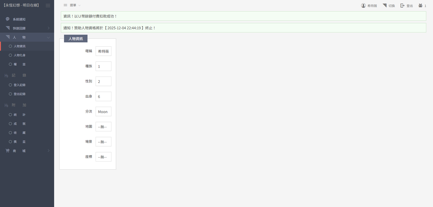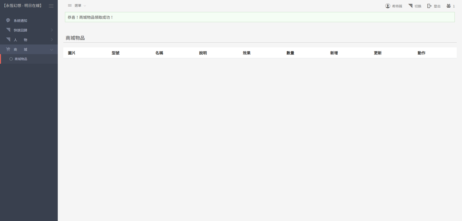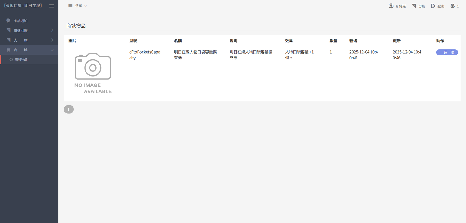 用戶商城購買票券 -> 用戶使用票券 -> 具現化至暫存空間 -> 人物祈禱領取 -> 人物確認